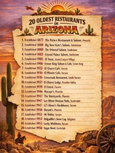 We came across this graphic recently; a nicely rendered list of Arizona’s 20 oldest restaurants, and it sparked something beyond mere nostalgia. Here was proof that Arizona’s uniqueness isn’t just carved into red rock canyons or painted across Sonoran sunsets: it’s ladled into bowls, grilled on ancient flattops, and served with stories that predate statehood itself.