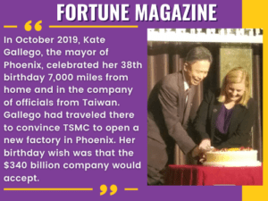 Fortune recently covered Mayor Gallego’s role in recruiting TSMC. Here is an excerpt from the article:
